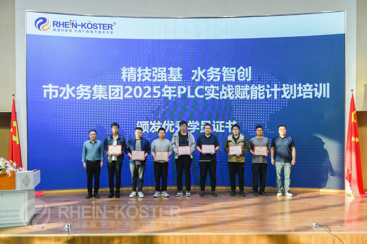 9月30日下午,淄博市水务集团2025年PLC实战赋能培训班结业仪式在中德智能制造产教融合示范基地顺利举行,为期九天的专项技能培训圆满完成。水务集团党群工作部副部长/人力资源部副经理朱玉恒、科技创新中心副主任刘嘉,莱茵科斯特培训师学院院长胡鹏昌、培训师以及全体参训学员共同参加此次仪式。
