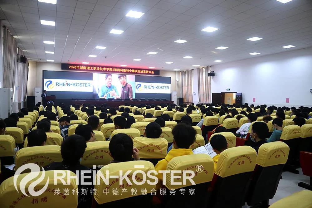 2020年10月13日上午,湖南理工职业技术学院&莱茵科斯特2020年中德班招生宣讲大会在湖南理工职业技术学院举行,近300名机电一体化专业新生参加活动。莱茵科斯特湖南公司副总经理易伟彪、莱茵科斯特湖南公司副总经理马姣林,湖南理工职业技术学院副校长黄春霞、动力谷分院副院长杨益梅、机电一体化专业带头人周迎春、智能制造学院副院长曾小波出席宣讲会。
