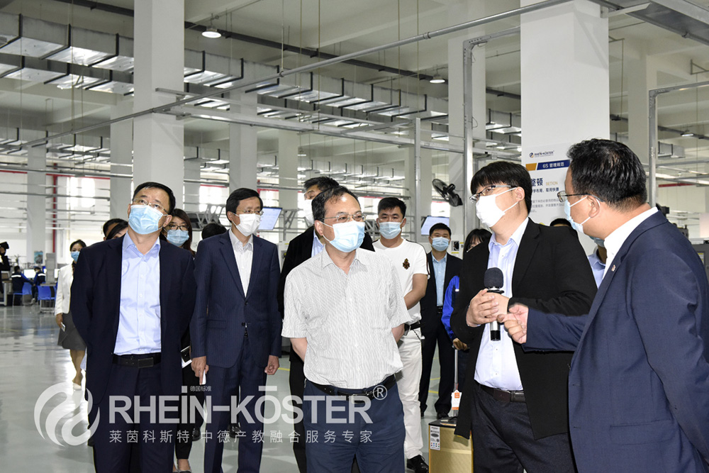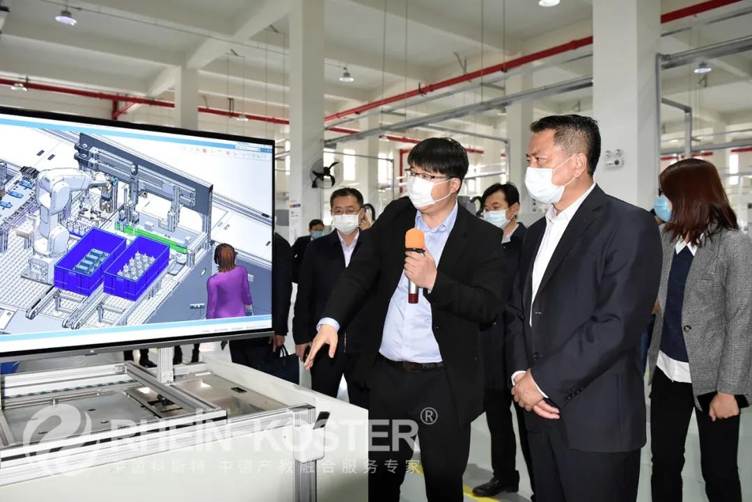 2020年5月22日,山东省副省长于杰来西海岸新区调研职业教育相关工作。山东省教育厅总督学邢顺峰,青岛市副市长朱培吉,西海岸新区管委主任、区长周安陪同调研。调研中,于杰副省长来到莱茵科斯特智能科技(青岛)公司调研指导中德产教深度融合工作开展情况。莱茵科斯特董事长崔智、常务副总经理胡成满、副总经理陈朋等接待调研组一行并汇报工作。