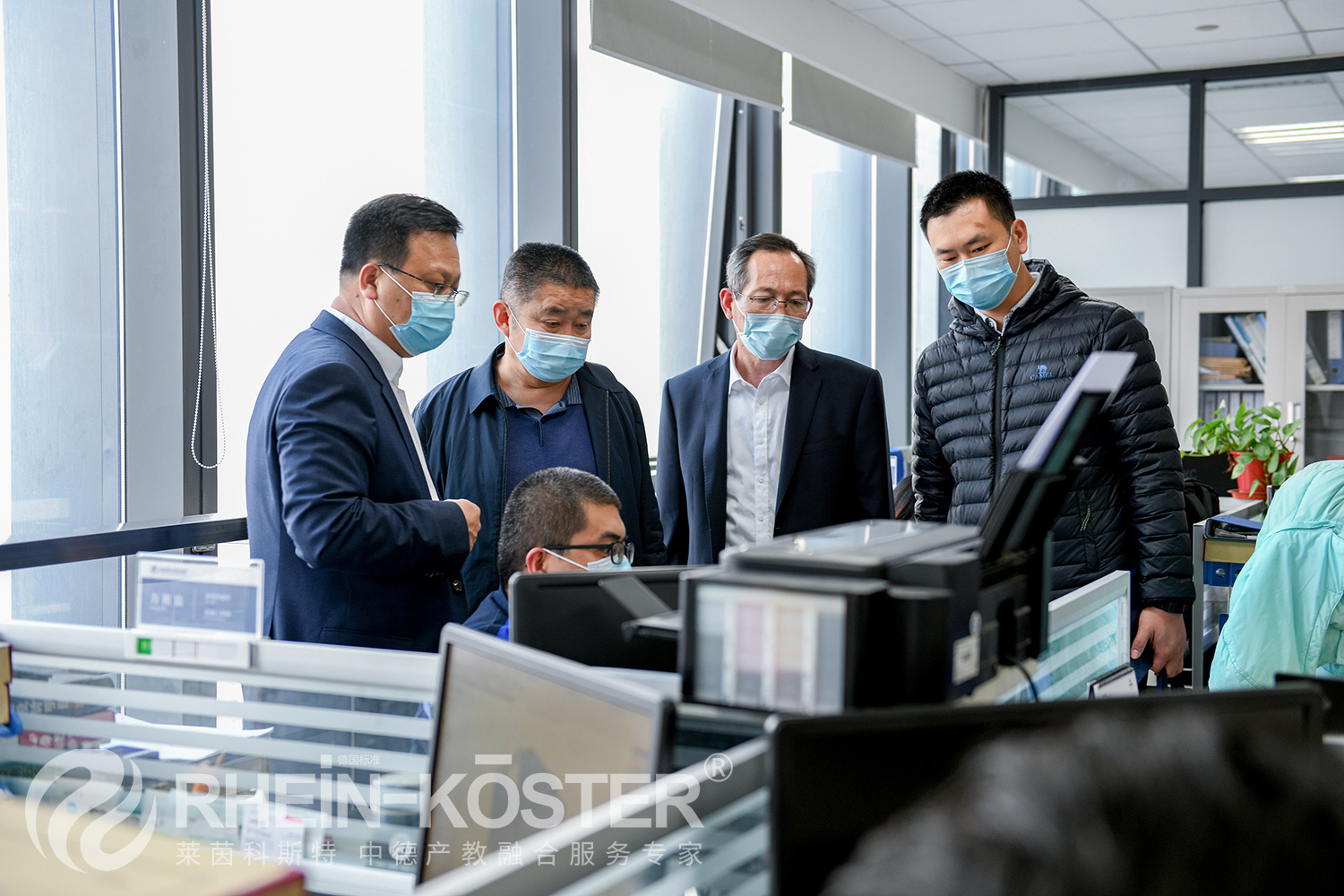 2020年3月26日下午,中国工业设计协会会长、山东省工业设计研究院院长刘宁一行7人莅临山东莱茵科斯特智能科技有限公司实地考察调研。淄博高新区工委书记、管委会主任魏玉蛟,淄博市工信局局长王克海,管委会副主任袁晖,市工信局副局长韩俊波等陪同调研。莱茵科斯特总经理崔智作情况汇报。