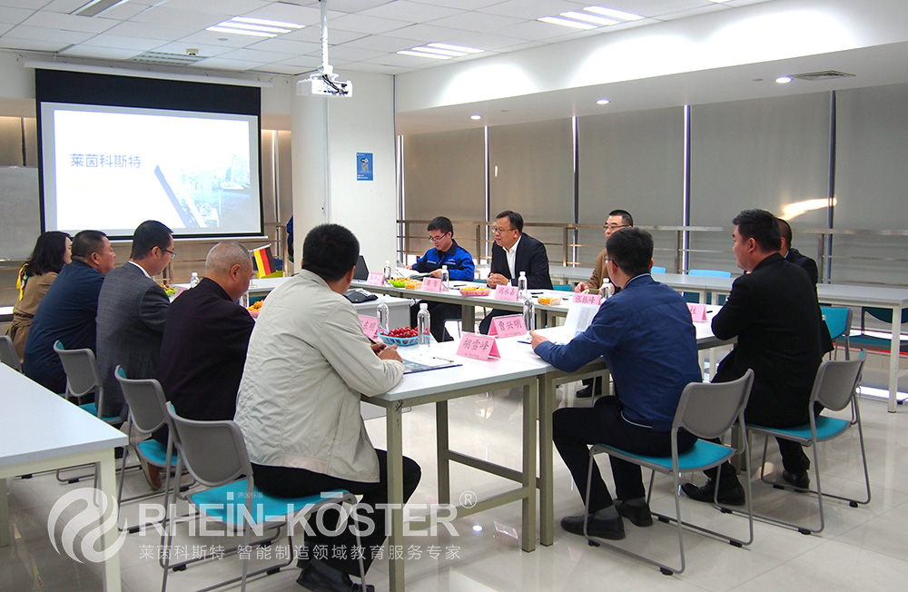 2019年11月11日,新疆生产建设兵团乌鲁木齐工业园区管委会主任胡新春、第十二师工信局副局长牟东慧,山东省工信厅产业政策处副处长温洪亮等一行莅临莱茵科斯特“双跨培训中心”暨“中德智能制造技术公共实训基地”考察高端技能人才培养输出以及智能制造领域工业服务等情况。莱茵科斯特总经理崔智、教育事业部部长王洪磊等陪同考察。