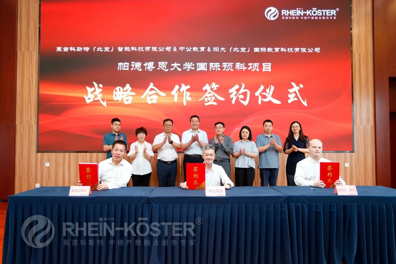 在全球化教育日益盛行的今天,德国莱茵科斯特集团中国区运营总部即莱茵科斯特(北京)智能科技有限公司携手中公教育及帕大(北京)国际教育科技有限公司,共同举办了一场具有里程碑意义的签约仪式,标志着帕德博恩大学国际预科学院北京校区项目的正式启动。