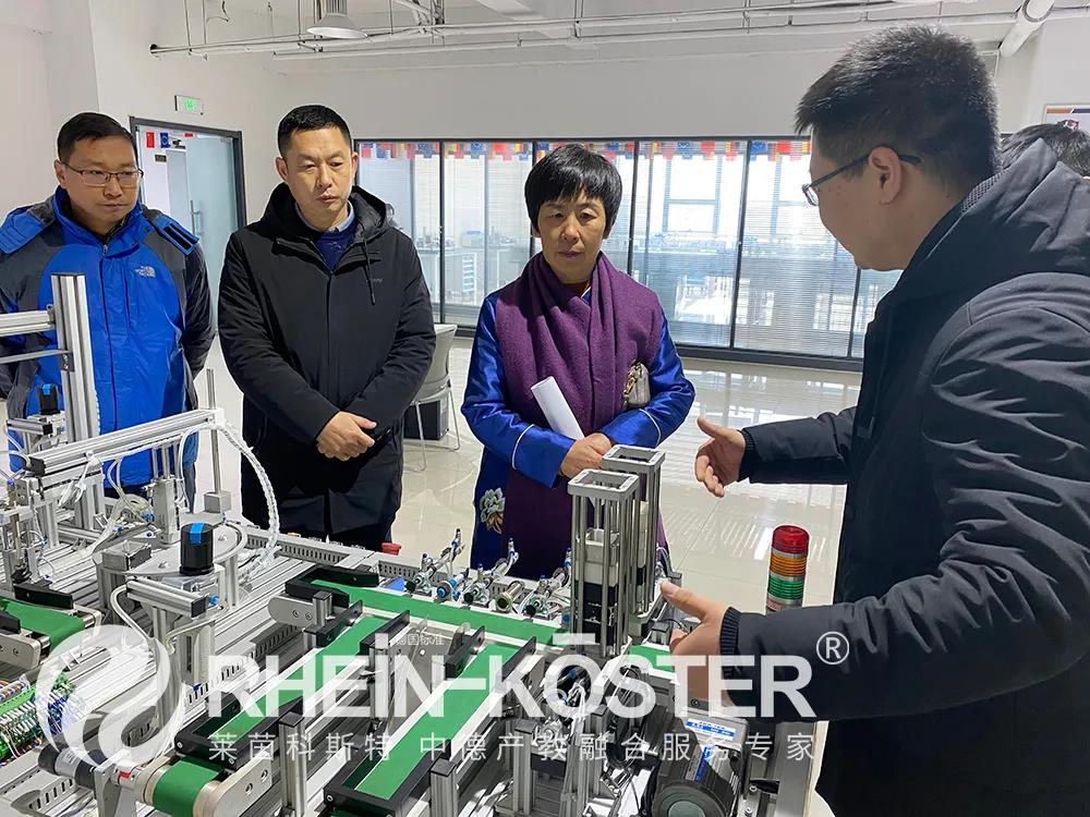 2020年12月31日上午,山东工业技师学院副院长张品文、教务处副处长魏效志、机电系主任李志杰一行莅临莱茵科斯特潍坊平台,考察学院学生在莱茵科斯特的学习实践情况。