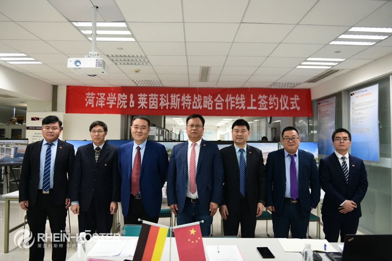 为深入贯彻《国务院办公厅关于深化产教融合的若干意见》(国办发〔2017〕95号),落实《教育部 工业和信息化部 中国工程院关于加快建设发展新工科 实施卓越工程师教育培养计划2.0的意见》(教高〔2018〕3号),深化产教融合、协同育人,2021年1月6日下午,莱茵科斯特与菏泽学院战略合作线上签约仪式隆重举行。菏泽学院党委书记衣玉琛,党委副书记、院长姜同松,党委委员、副院长胡尊东,德国莱茵科斯特公司总裁艾瑞克·莫斯卡瓦教授、莱茵科斯特总经理崔智、副总经理刘东海、副总经理陈朋、副总经理刘大力等校企领导出席仪式。莱茵科斯特市场运营总监王伟主持仪式。