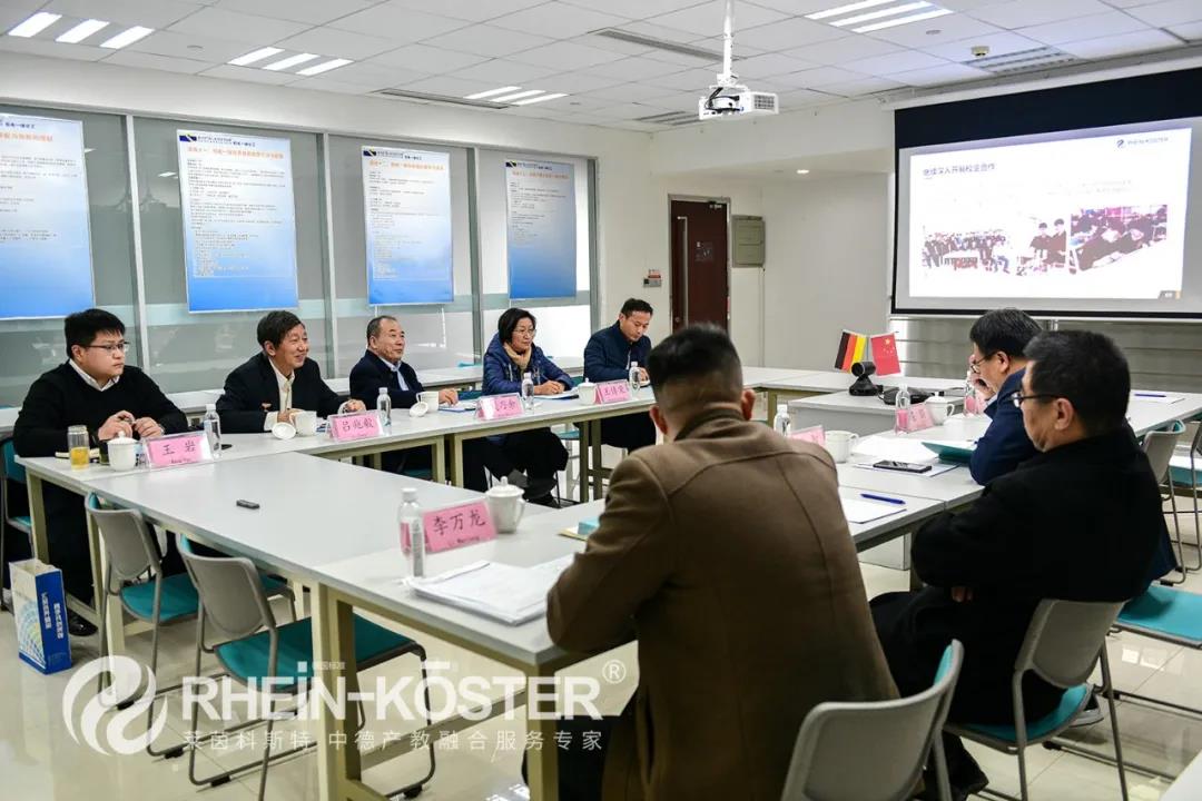 2020年12月1日,山东职工教育协会会长、山东商业职业技术学院职业教育与产业人才研究院研究员钱乃余教授,山东财经大学博士生导师、经济学院副院长王传荣教授,山东省职工教育协会顾问、山东省科学院科技发展战略研究所研究员吕兆毅,山东省职工教育协会常务副秘书长王云川,山东省职工教育协会校企合作部部长王岩一行到莱茵科斯特考察2020年山东省产教融合(基地)示范单位申报情况,调研企业职工教育培训及现代职业教育等情况。莱茵科斯特总经理崔智、副总经理阎永嘉等出席座谈。