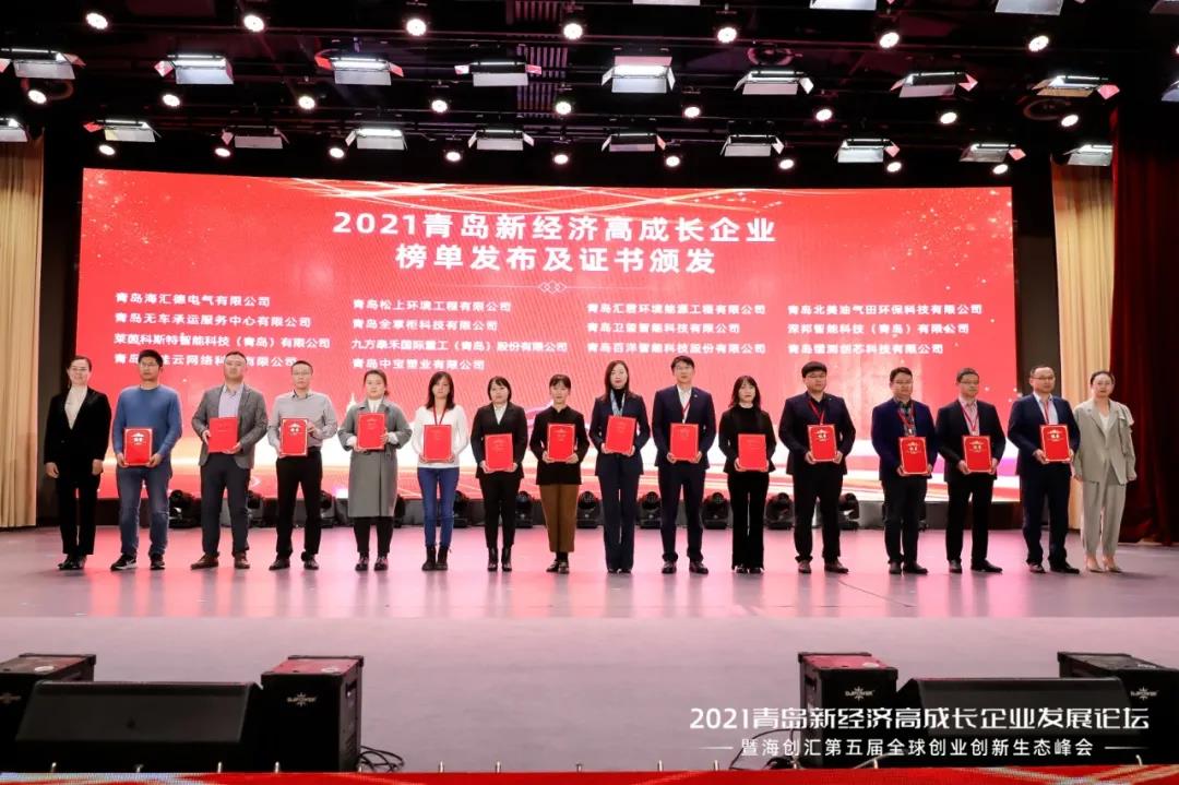 In order to implement the work deployment of the Qingdao Municipal Party Committee and Municipal Government to ‘accelerate the development of manufacturing and the Four New Economy (New technology, New industry, New business format, New Model)’, and cultivate high-growth enterprises in the new economy. Qingdao Civil Economic Development Bureau cooperated with third-party organizations to organize and complete the selection work of high-growth enterprises of Qingdao New Economy, commend and promote the models of high-growth enterprises and further promote the improvement of the entrepreneurial and innovative capabilities of Qingdao enterprises. On November 23, 2021, the 2021 Qingdao New Economy & High-growth Enterprise Development Forum and the Fifth Global Entrepreneurship and Innovation Ecological Summit was grand held at Haier’s Iceberg, Zhang Dengfang, Second Inspector of Shandong Provincial Department of Industry and Information Technology, Zhu Peiji, Deputy Mayor of Qingdao Municipal People’s Government, Gao Shanwu, Director of Qingdao Civil Economic Development Bureau, Wang Feng, District Mayor of Laoshan District People’s Government and other urban areas relevant leaders attended this meeting. Gao Shanwu conducted the summit.