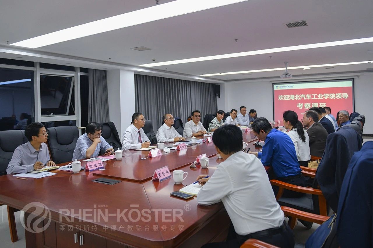 On October 27, 2023, nine people, including Wang Xiao, Deputy Secretary of the Party Committee and President of Hubei University of Automotive Technology, Zhang Youbing, Vice President of Hubei University of Automotive Technology, and Zhang Shanshan, Deputy General Manager of Wuhan Economic Development Industrial Investment Group Co.,Ltdvisited Rhein Koester for exchanges.