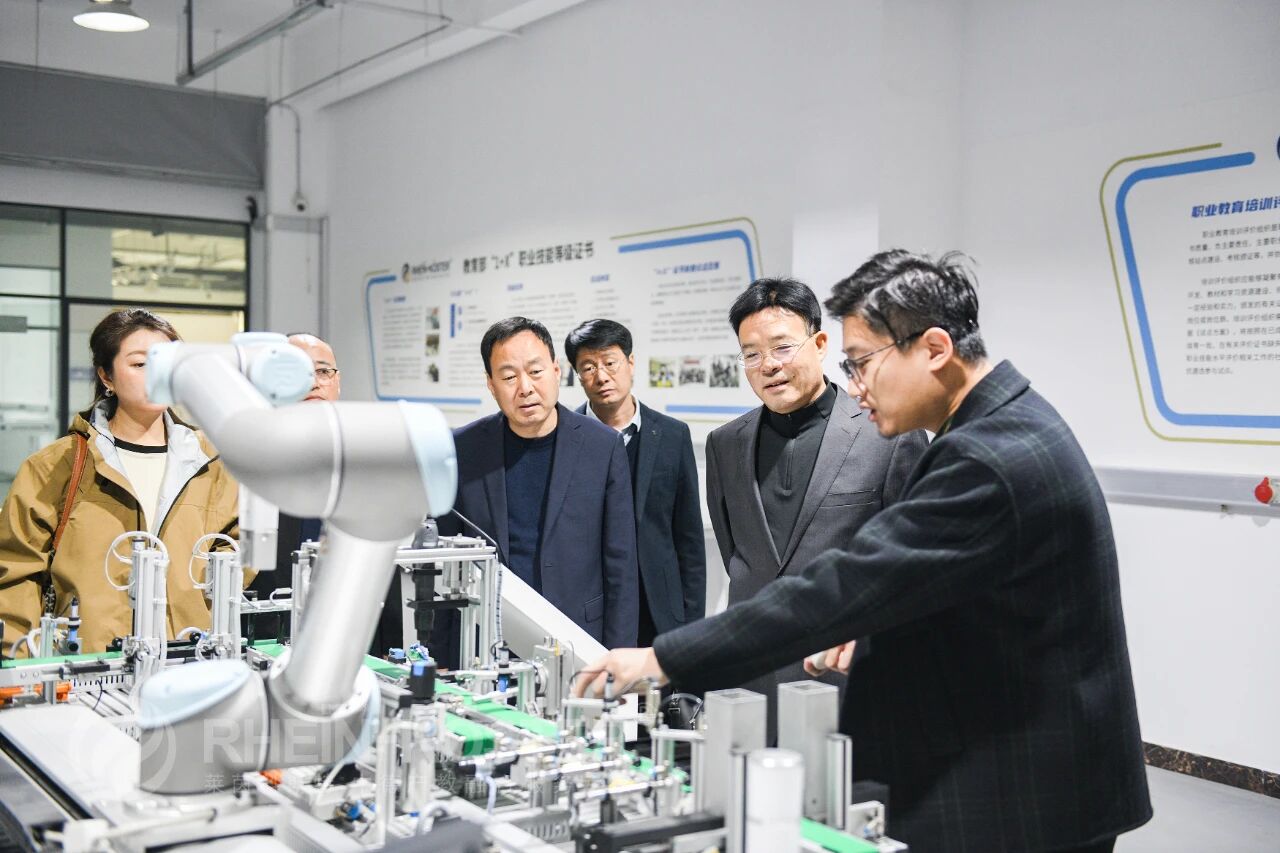 The delegation conducted an on-site visit to key areas of Rhein-Koester, including the Intelligent Manufacturing Training Center, Technology R&D Center, and Digital Exhibition Hall. They gained a detailed understanding of the company’s cutting-edge technologies in the intelligent manufacturing field and mature industry-education integration solutions, and fully recognized Rhein-Koester’s innovative model in industry-education integration and skilled talent cultivation.
