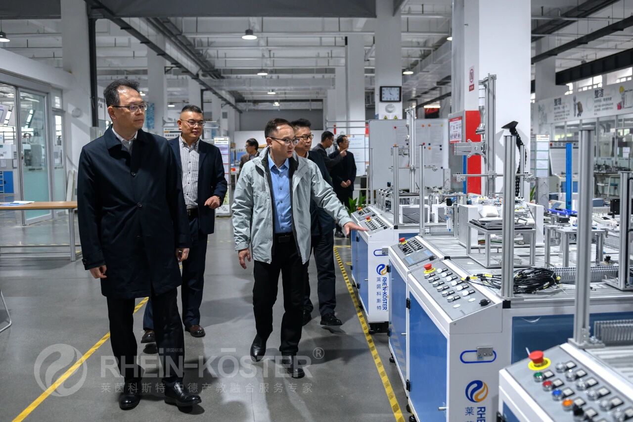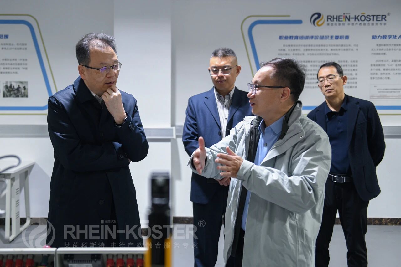 The visiting leaders first visited the Sino-German Intelligent Manufacturing Industry-Education Integration Demonstration Base constructed and operated by Rhein Koester. At the Sino-German Intelligent Manufacturing Industry-Education Integration Training Center, they gained a detailed understanding of the base’s construction background, development history, operation model and the remarkable achievements made. They fully affirmed Rhein Koester’s efforts in introducing and localizing Germany’s “dual-system” talent training model, as well as its innovative practices in multi-level intelligent manufacturing talent cultivation.