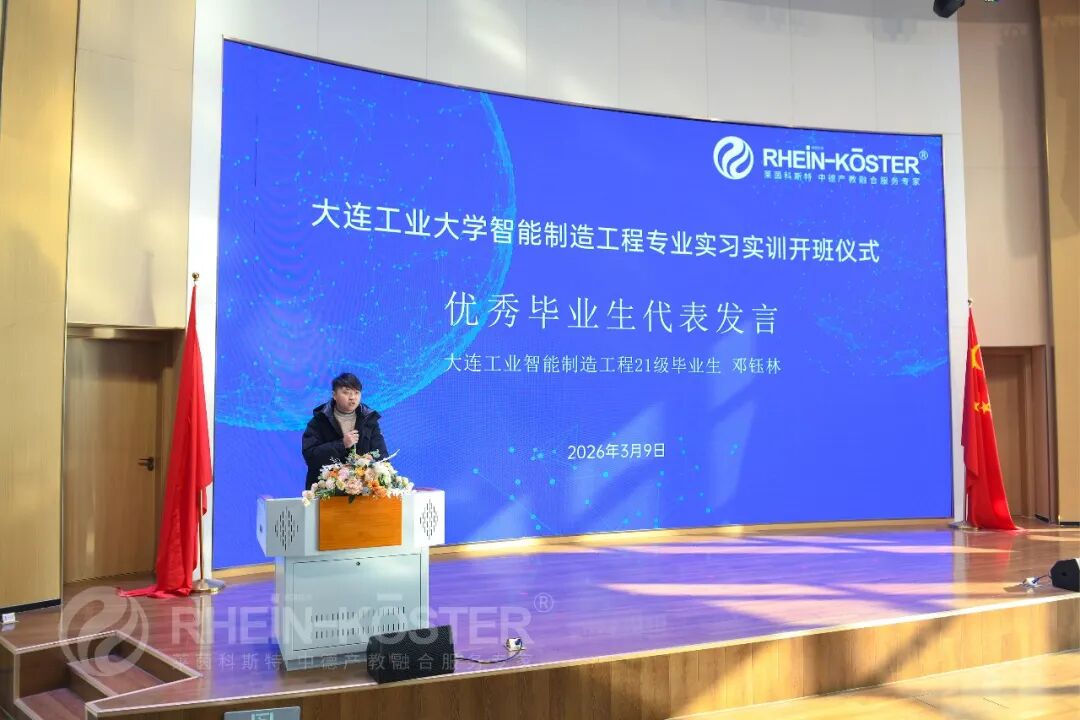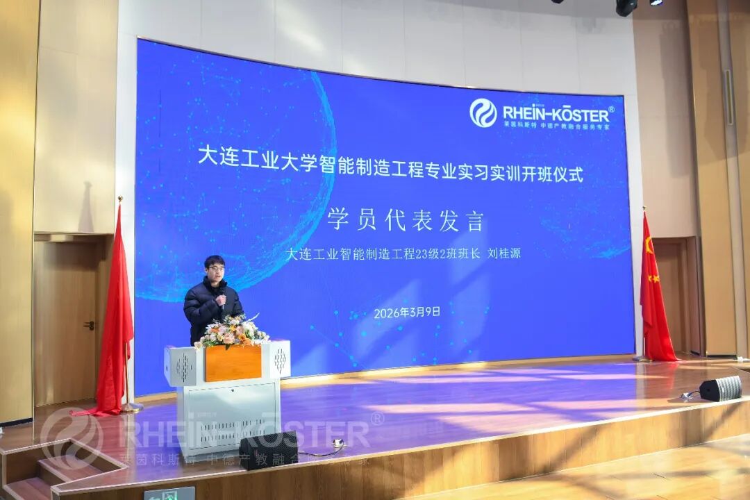 Liu Guiyuan, monitor of Class 2, Grade 2023 majoring in Intelligent Manufacturing Engineering at Dalian Polytechnic University, spoke as a student representative. He expressed gratitude to the university and Rhein-Koester for providing this valuable practical platform, and stated that he would devote himself to the training with full enthusiasm, striving to improve his professional skills and engineering competence.