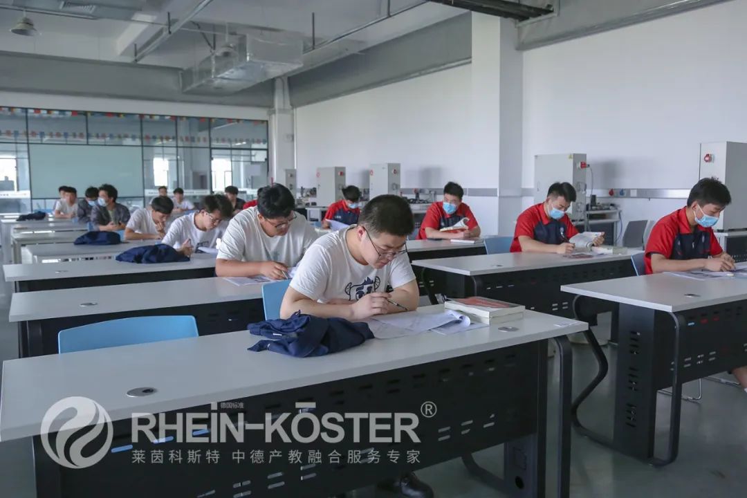 为保障本次考试的顺利进行,莱茵科斯特考试中心第一时间成立了考务委员会,来自平度市技师学院、山东城市服务技师学院等院校中德国际项目班的300余名学生参加了此阶段考试。由于疫情原因,为确保每一位考生能够“就地、就校、就家”准时参加考试,考试采用“线上+线下”相结合方式进行,所有线下考场通过视频监控全程直播,实现多考场同频、无死角监考。In order to ensure the smooth progress of exam, the Rhein-Koester Examination Committee was established at the first time. Approximately 300 students (Sino-German International Project) from Pingdu Technician Institute, Shandong City Service Technician College and other colleges participated the exam. Due to the virus prevention issue, in order to assure every student to can take the test on time, the test is conducted in a combination of ‘Online+Offline’, all the offline rooms are inspected by CCTV, realized multi-exam room with the same frequency, no dead angle invigilation.