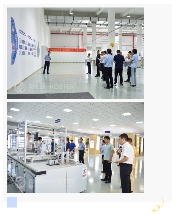来访嘉宾先后参观了莱茵科斯特中德智能制造技术双跨培训中心、中德双元制机械实训基地、工业4.0制造加工区域等,详细了解了公司发展情况、科技创新、研发成果及基地建设工作。
