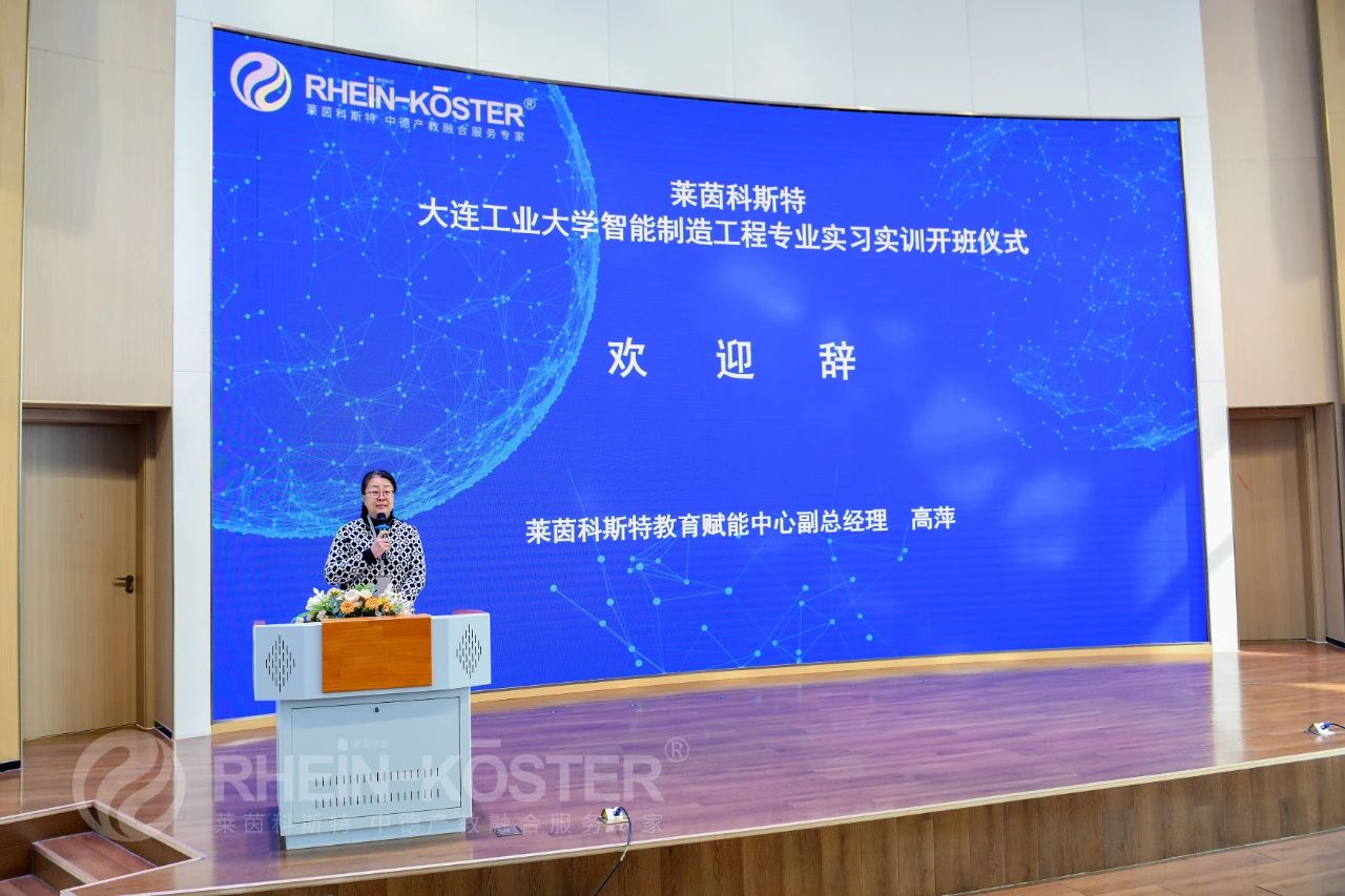高萍副总经理在致辞中表示,莱茵科斯特作为中德智能制造产教融合的先行者,致力于赋能中国智造、培育未来人才。此次培训,莱茵科斯特将通过全链条技术服务体系和深度产教融合战略,为学生们提供一个从“学生”到“工程师”身份转换的宝贵平台,同时与大连工业大学携手探索一体化育人模式,为每位学生定制实践档案,并为优秀学员提供纳入人才资源库和参与中德联合培养计划的机会。她希望学生们能够摒弃浮躁,专注于技术学习,以空杯的心态接受实践挑战,用跨界思维拓宽视野,用工匠精神追求细节完美,在真实的工业环境中不断成长,将这次实践经历作为职业生涯的精彩开端。