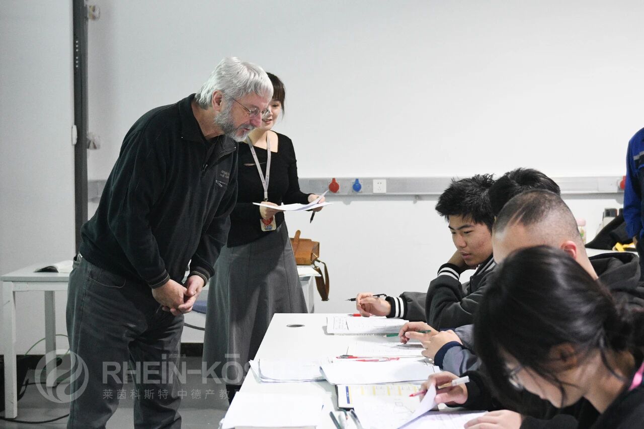 2025年11月3日-15日,德国巴伐利亚州麦明恩职业技术学校工业机械专业负责人Gerhard Haag先生、前国立肯普滕第一职业技术学校德语教师Helmut Hausner先生应邀来到中国,走进莱茵科斯特,展开了为期两周的深度教学交流活动。作为“赴德培训就业一体化项目”开班后的重要环节,此次访问不仅为项目注入了纯正的“德国基因”,也为学员与师资团队带来了前沿的专业理念与实践经验。