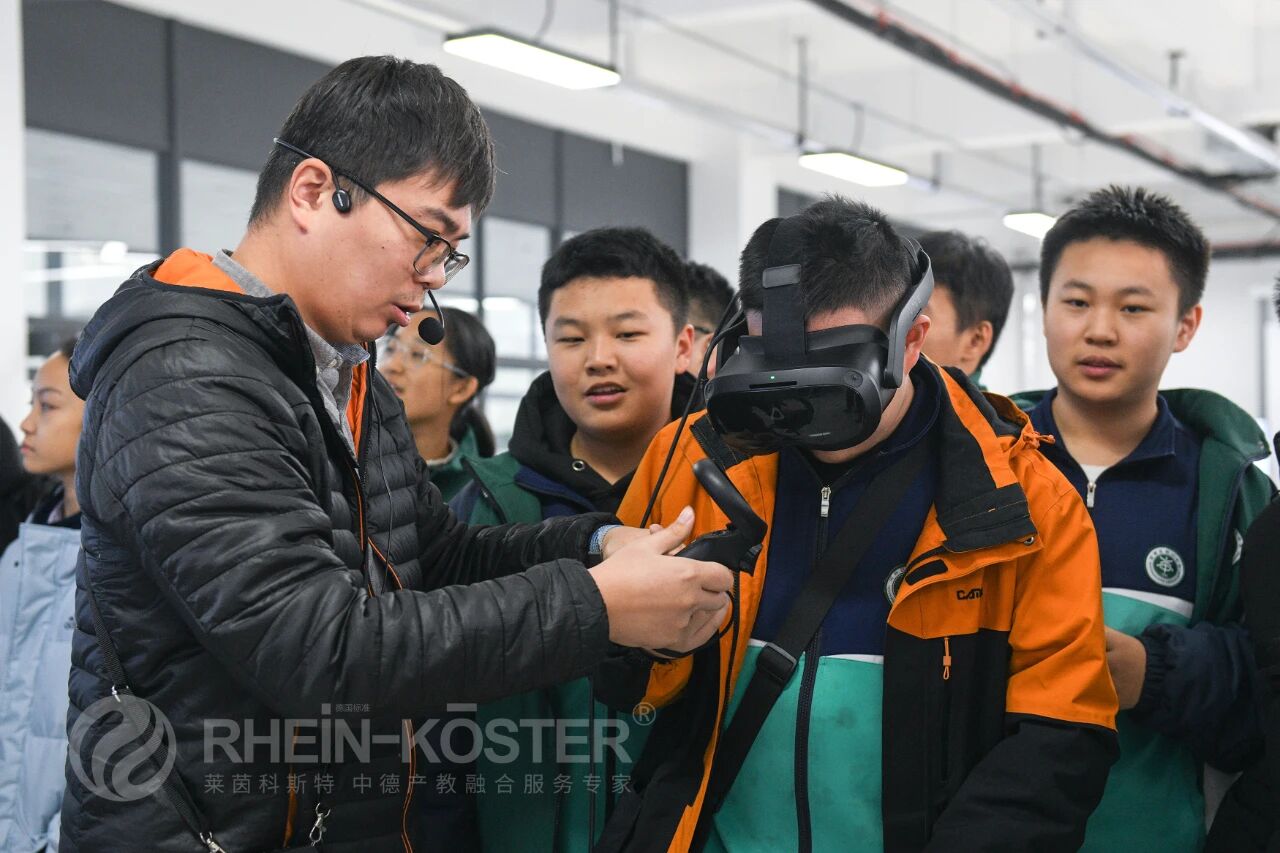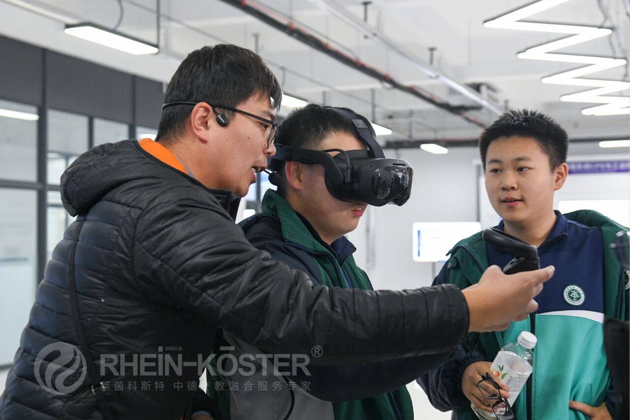 最令同学们兴奋的是工业场景VR操作体验环节。戴上VR设备,他们“沉浸式”进入智能工厂,模拟操作机械臂、参与虚拟产线调试,在虚实结合中理解智能制造流程。这一环节不仅增强了学习的趣味性,也让抽象的技术知识变得直观可感。