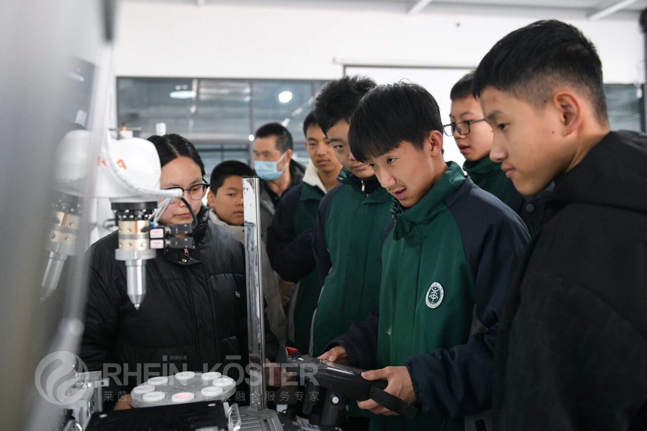 本次活动以“理论学习+场景体验”为主线,旨在让学生近距离感受智能制造的前沿技术,理解工业数字化、智能化的现实应用。在莱茵科斯特培训师的引导下,学生们积极参与“奇妙的机器人”科技课堂,通过生动讲解和互动演示,逐步掌握机器人基本工作原理及工业场景中的实际应用。