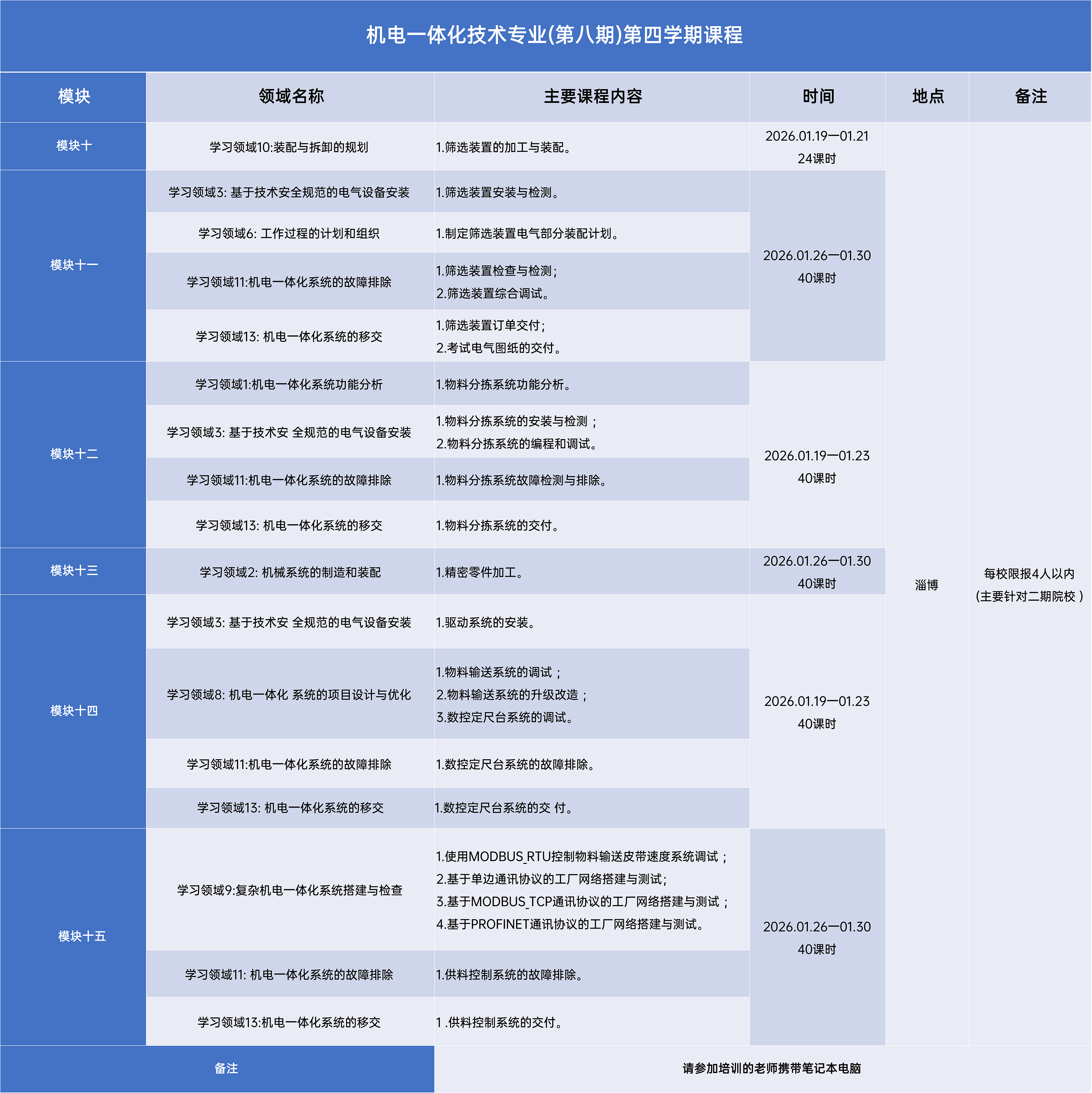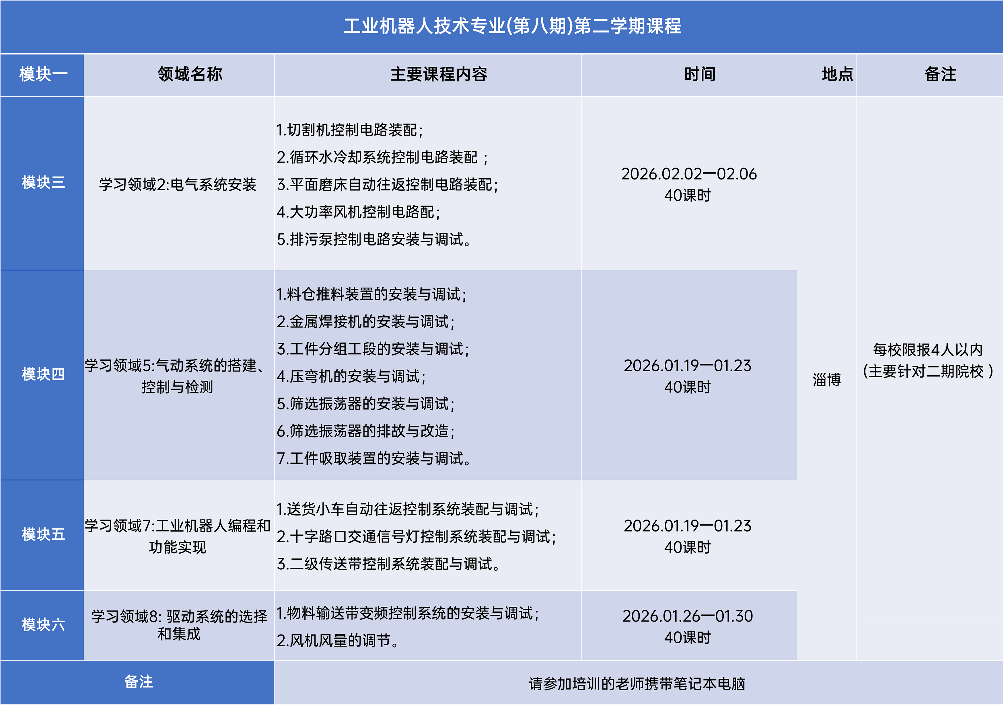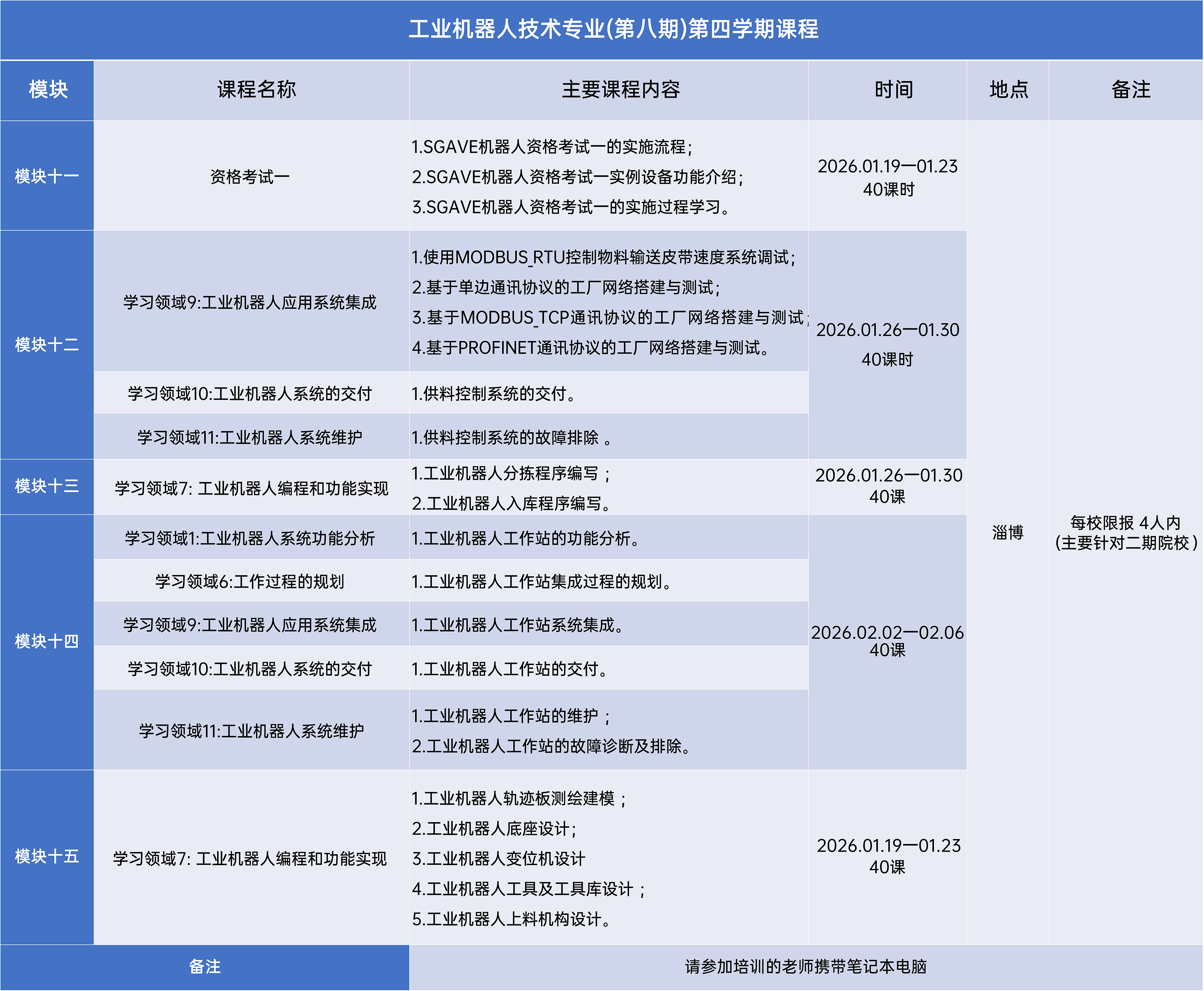 附件四:工业机器人技术专业-第四学期课程计划