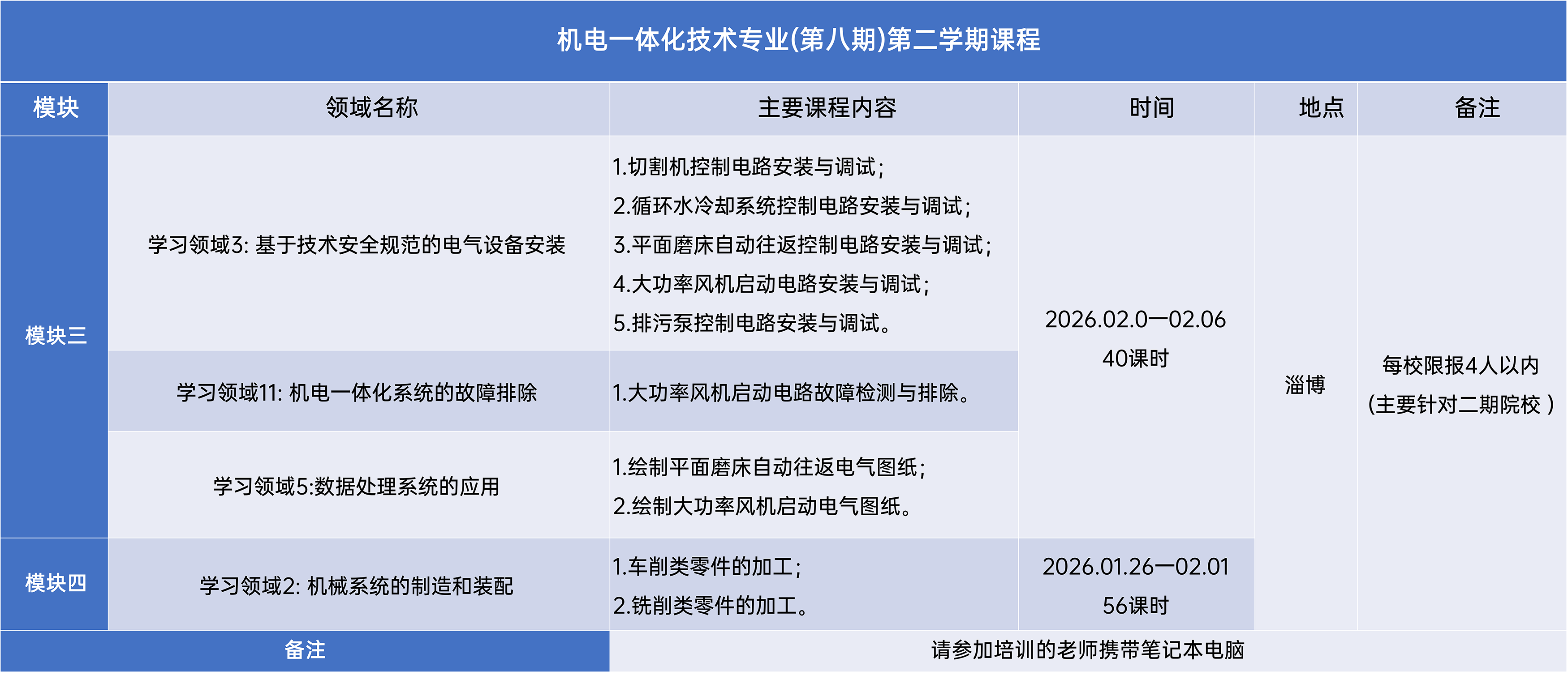 附件六:机电一体化技术专业-第四学期课程计划