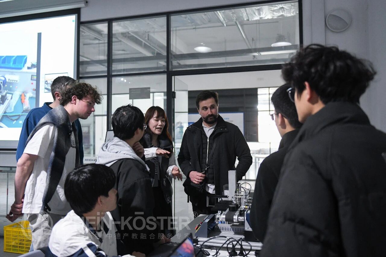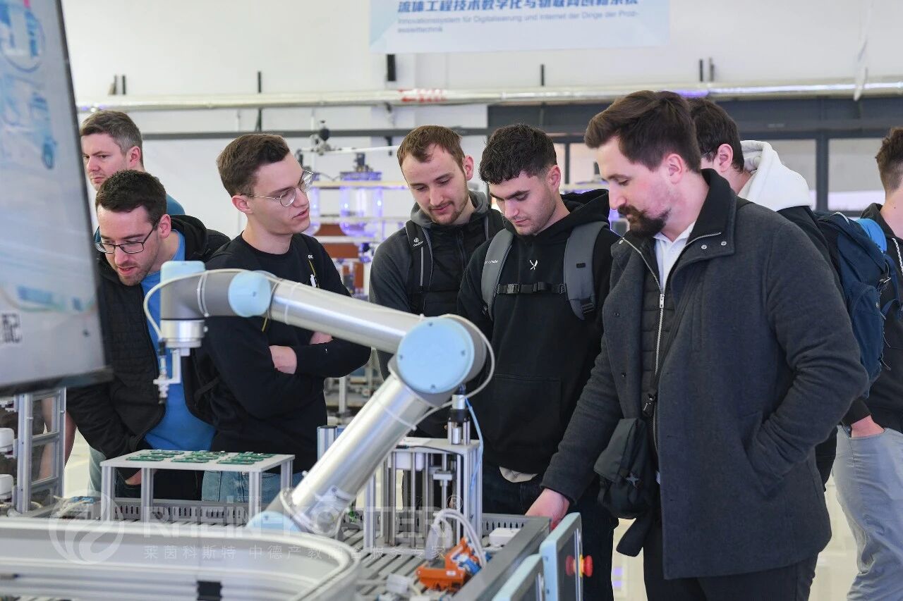 学访团一行先后参观了中德智能制造产教融合示范基地、智能实训中心与工业4.0实训产线,深入了解莱茵科斯特在引进德国双元制职业教育体系过程中所进行的本土化创新,以及自主研发的符合国际标准的智能制造教学装备与产线。参观期间,学访团成员还与正在实训的大连工业大学智能制造工程专业学生进行了面对面交流,就课程内容、技术实践和跨文化学习体验交换了看法。