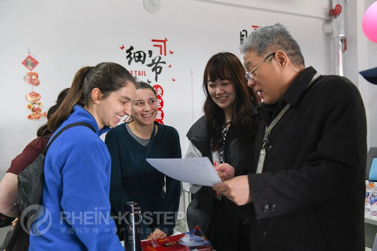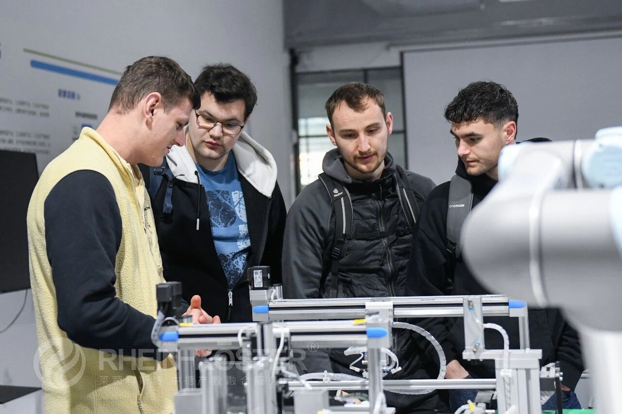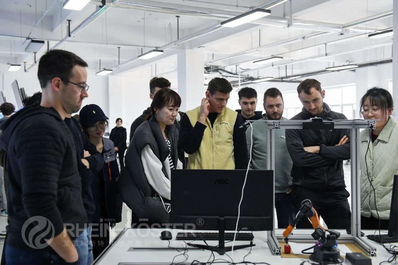 2026年3月23日,德国巴伐利亚技术学院学访团一行到莱茵科斯特参观交流。莱茵科斯特 “赴德培训就业一体化项目”学员们向学访团一行介绍了公司在双元制本土化实践、智能制造人才培养等方面的成果。