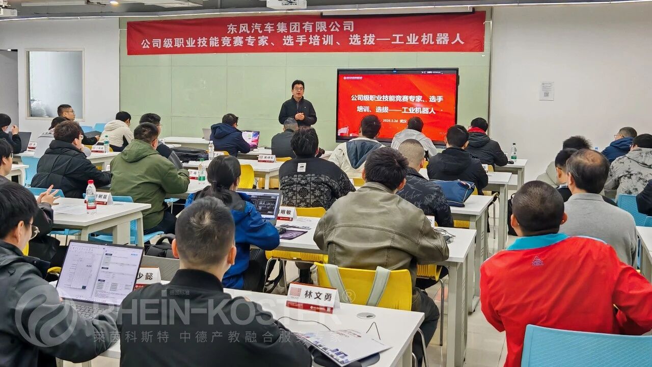 2026年3月24日,由东风汽车集团有限公司人力资源主办,东风人事共享人才发展中心承办,武汉莱茵科斯特智能科技有限公司协办的“公司级工业机器人职业技能竞赛专家、选手培训、选拔培训班”在武汉经开2045创新谷正式拉开帷幕。本次培训旨在为东风选拔具备竞争力的省国赛后备力量,东风公司各二级单位的参赛选手与技术专家汇聚一堂,以饱满的热情投入到紧张有序的培训当中。