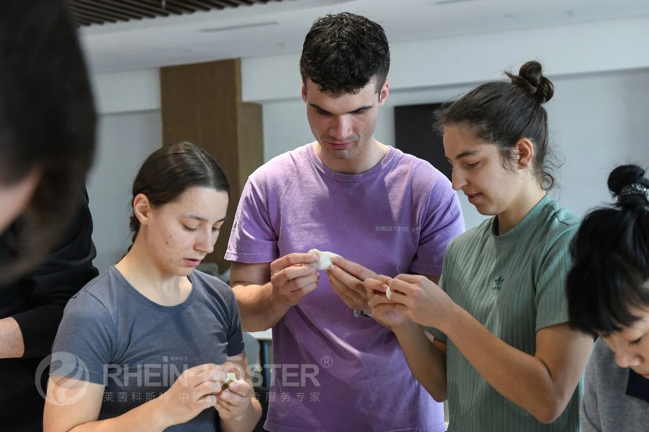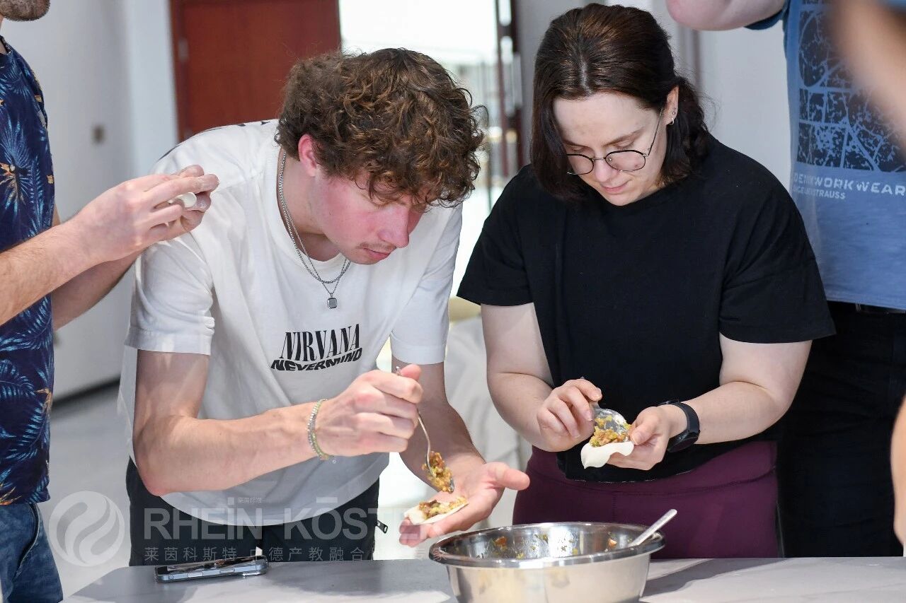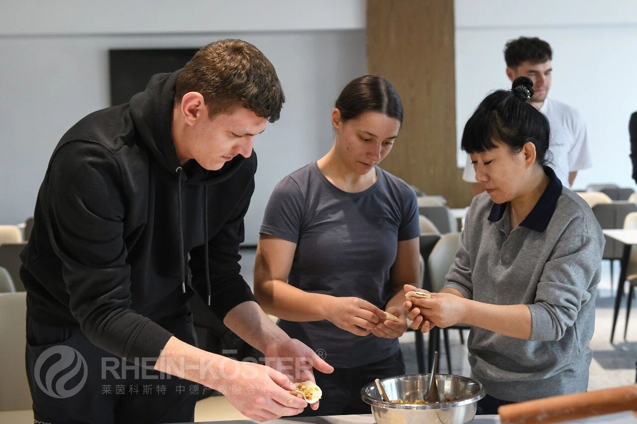 德国技术员们兴致浓厚,纷纷动手尝试。虽是初次接触中式面食制作,擀皮时厚薄不均、包馅时造型各异,但大家都格外投入,互相交流技巧、分享心得,慢慢摸索出自己的方法。在烟火气中,大家真切感受到中国传统民俗的魅力,也体会到中式饮食文化所传递的温情。