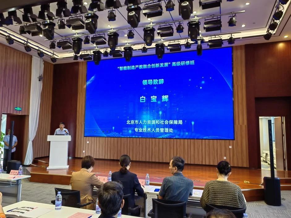 北京市人力资源和社会保障局领导白宝辉在致辞中指出,研修班旨在深化《北京市人力资源和社会保障局关于加强 2024 年北京市高级研修班以及资助经费管理工作的通知》(京人社专技字〔2024〕67 号)要求,推动京津冀地区的中高级技术人员能够更为深入地学习智能制造行业的关键技术、数字化转型趋势以及产业人才培养方向,通过学习能够领会新质生产力和未来产业的发展方向,推动京津冀地区产业高质量协同发展。